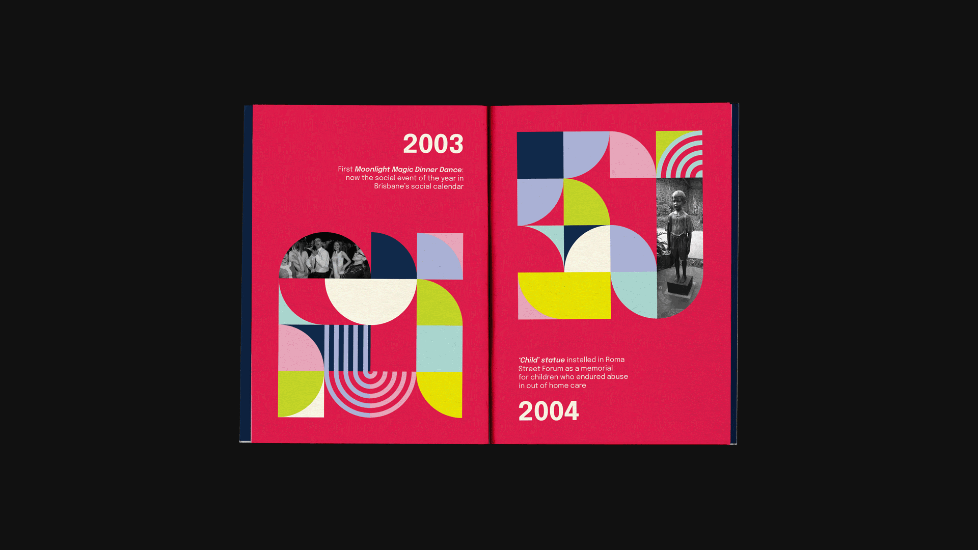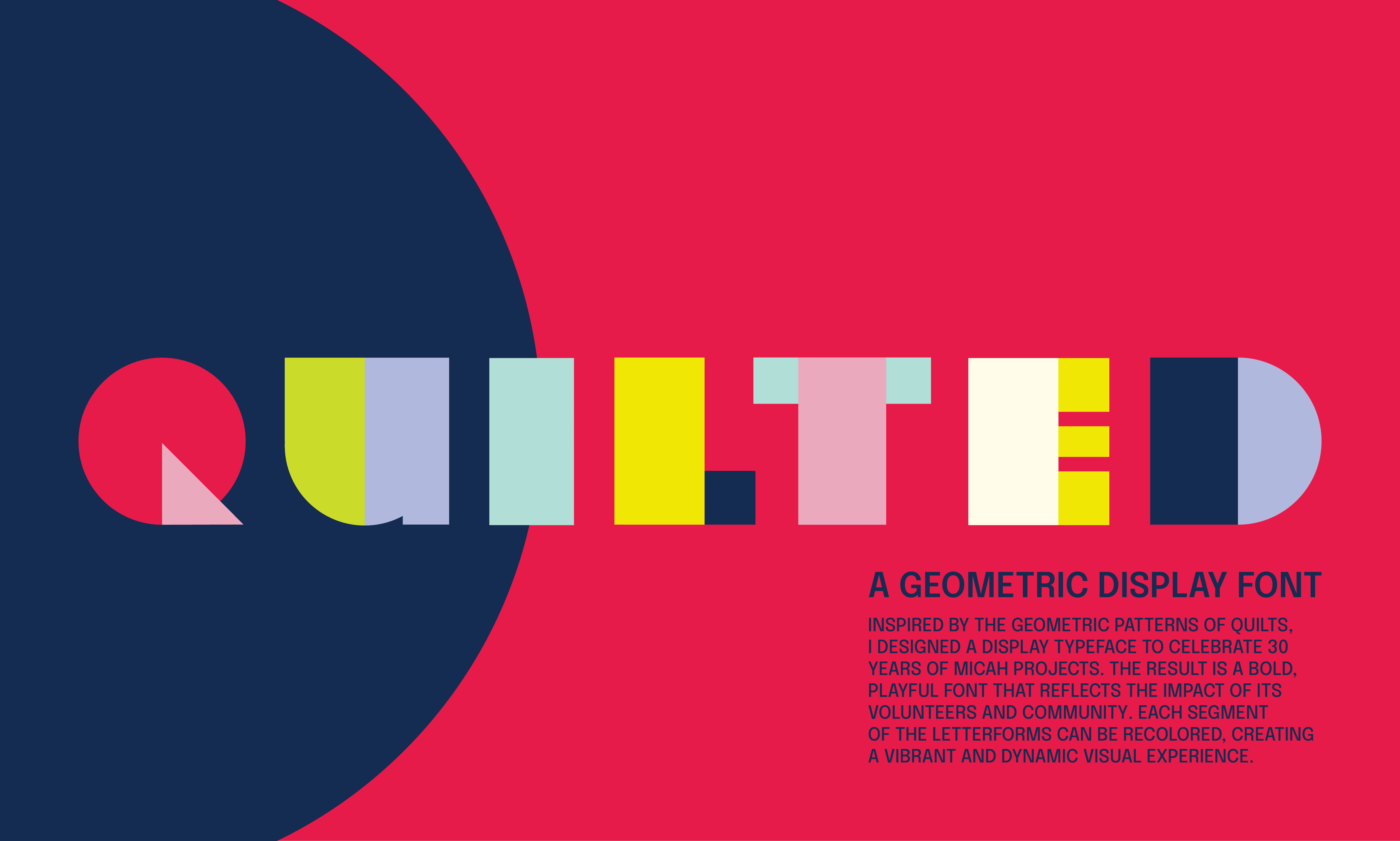 As a volunteer graphic designer at Micah Projects, I created a commemorative zine celebrating the organization’s 30-year anniversary. Micah Projects is a West End-based community organization supporting people experiencing homelessness and social disadvantage. The zine features one page per year of operation, detailing the positive impact they’ve made on the community and invaluable contributions of volunteers throughout the years. While maintaining Micah Projects’ brand identity, the visual design draws inspiration from quilts crafted by the Happy Patches, a community group that creates handmade quilts for newborns and families accessing Micah Projects’ services. Custom typography echoes the geometric patterns found in these quilts.